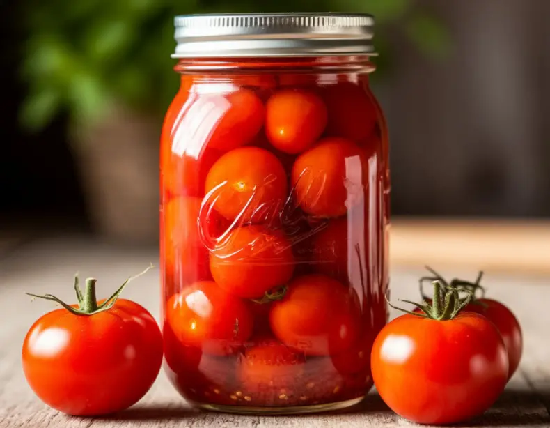 Помидоры, чтоб не лопались, протыкают с 2-х сторон зубочисткой. Заливаются 2 раза кипящим рассолом. Второй раз добавляется 1 чайная ложка уксуса (70-процентного). Закатываем и убираем, как всегда.
