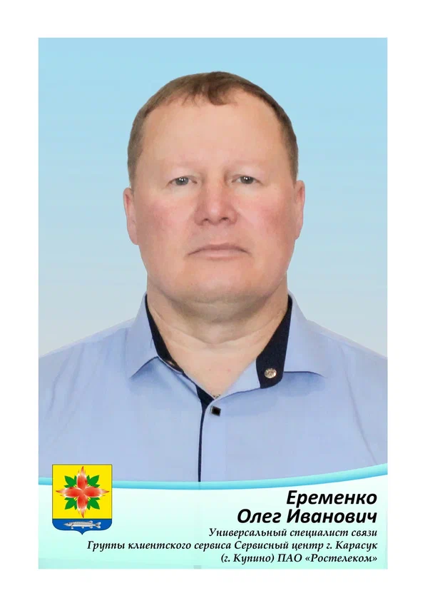 Олег Иванович Ерёменко, ПАО «Ростелеком», Сервисный центр г. Карасук (г. Купино) – универсальный специалист связи, грамотно организующий свою работу.