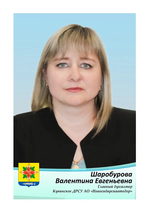Валентина Евгеньевна Шаробурова начала свою трудовую деятельность в филиале АО «Новосибирскавтодор» Купинское ДРСУ в 2005 году бухгалтером, с 2014 года занимает должность главного бухгалтера.