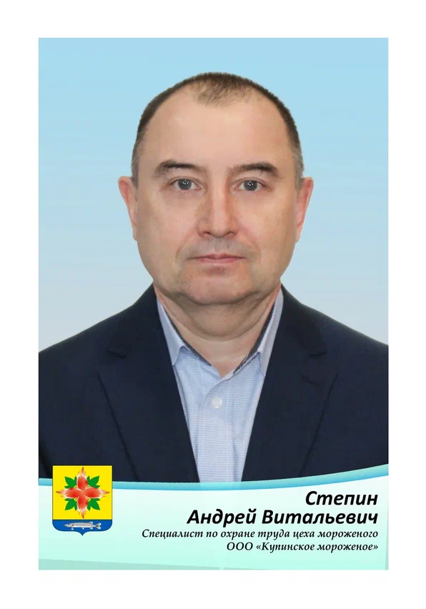 Андрей Витальевич Степин начал трудовую деятельность в ООО «Купинское мороженое» в 1994 году. За время работы зарекомендовал себя как инициативный сотрудник. Обладает высоким уровнем квалификации, достаточным опытом и практическими знаниями, по многим вопросам может дать исчерпывающую консультацию. Хорошо знает постановку учета и отчетности по охране труда. Знает свои права и обязанности и осознает степень ответственности. Свободно ориентируется в вопросах безопасности и охраны труда.