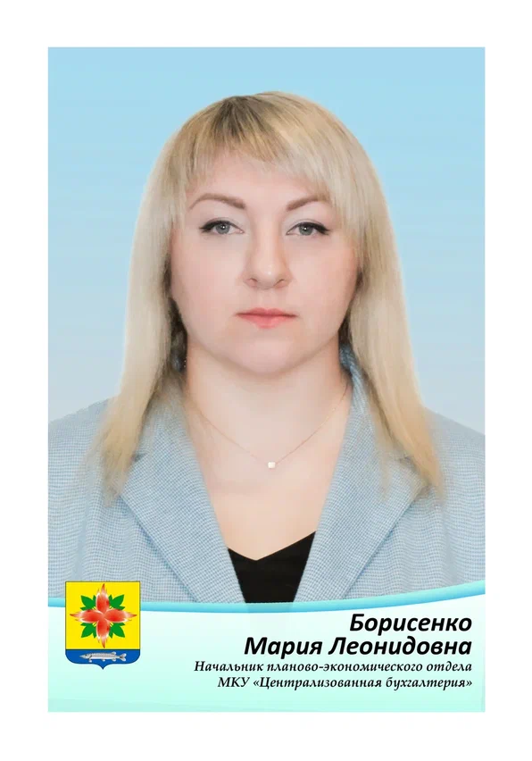 С 1 февраля 2024 года Мария Леонидовна Борисенко занимает пост руководителя планово-экономического отдела в Централизованной бухгалтерии. Ранее, вплоть до 1 февраля 2024 года, она работала в этом же отделе в качестве ведущего экономиста. Свои обязанности исполняет оперативно и качественно, в полном соответствии с установленными должностными инструкциями. В процессе решения рабочих задач регулярно проявляет инициативный подход.