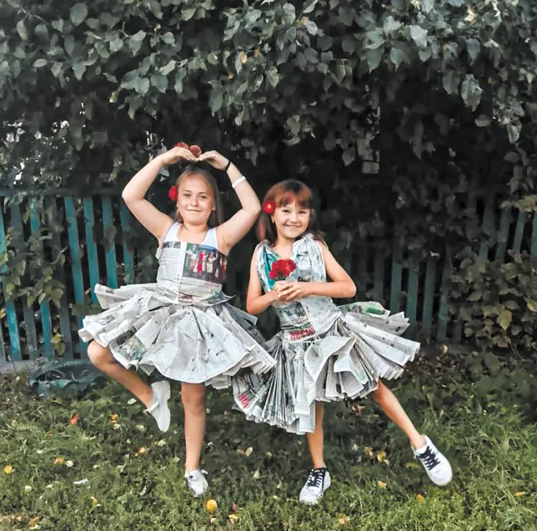 Пожалуй, каждая девочка в детстве мечтала быть балериной, и если не блистать на сцене, то хотя бы примерить воздушную пачку. Грациозные танцовщицы в невесомых нарядах и вдохновили Аню и Алику на творчество. Газета «Маяк Кулунды», немного скотча, плюс фантазия и упорство – и вот элегантные костюмы готовы. И можно наряжаться, фотографироваться!